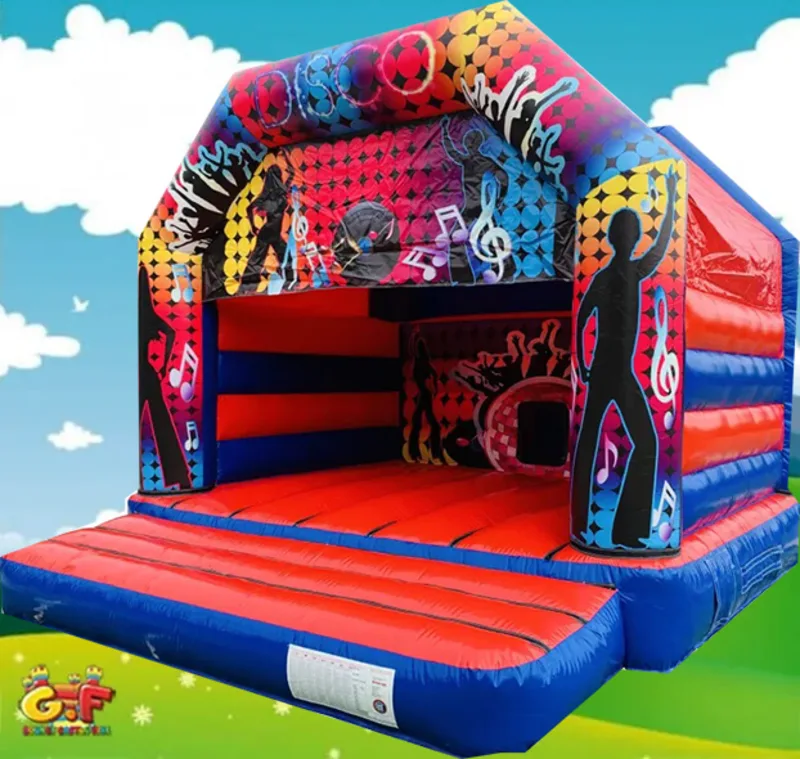 The 15 x15 Disco Theme Blue & red Bouncy Castle hire is the perfect theme for any themed party, venue or occasion. The Disco Theme Blue & red castle is a great size at only 11.6f tall which makes the hire ideal for both indoors and outdoor hire and will keep Adult / children entertained for hours, leaving you to be able to sit back and watch them play. The Disco Theme bouncy castle is the perfect theme for any party idea or celebration.