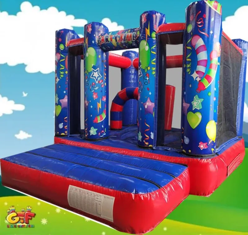 The Netted multiplay bouncer is a great size and will keep children entertained for hours, leaving you to be able to sit back and watch them bounce, play, laugh, have fun and enjoy their day. The Red Blue Party theme is very realistic and absolutely fantastic quality & bouncer still offers a safety step at the front which makes it easy for getting on and off the inflatable safely.